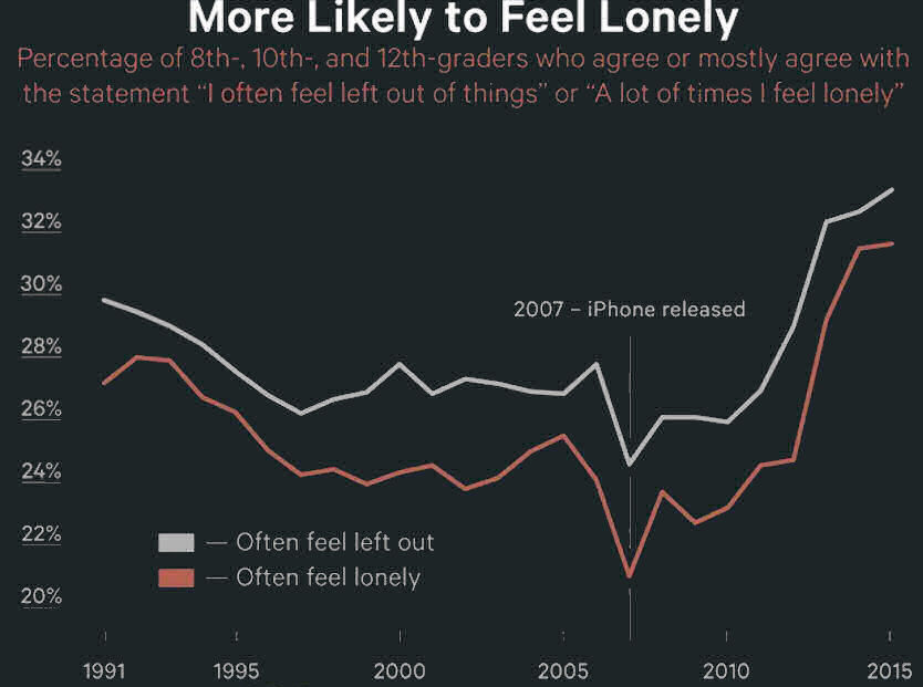 Like a war of attrition thats waged via seemingly unrelated tangents when you put together the variables a new image pops in to focus and it links, interestingly, with exactly what we’re seeing as people feel profoundly lonely yet are connected digitally, have way more food and variety to eat but are also becoming fatter as they wheeze and pop a few more pills to mask the symptoms.