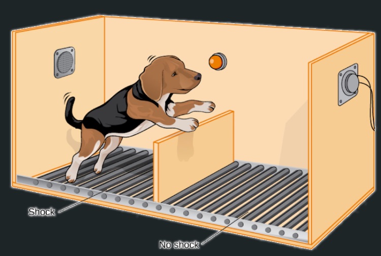 You take a dog, place it inside cage where one part of the floor can be electrified and there is a small divider within. The moment that voltage starts flowing it will get the heck out of the way of the problem. What if there is no place to escape? What then? Why then it sits there and takes it. Surprisingly even if moved to the cell where there is an option to exit, it will not even attempt.