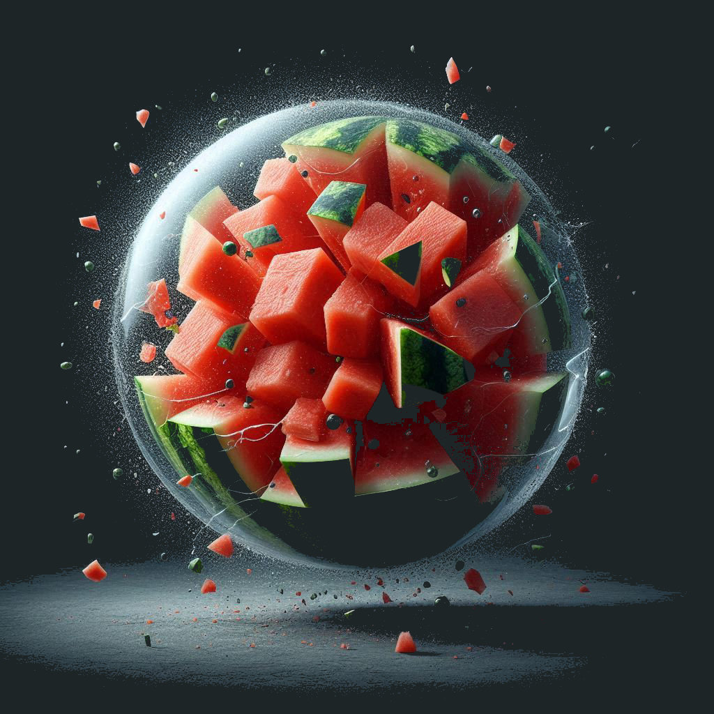 Sometimes, it seems, the hyper sphere program generates something which exceeds expectations. Sometimes, a watermelon that never knew the life of a square, or that of a circle either, rises to the moment. What do you think happens next?