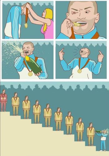 Is such a thing even possible when everyone wins and is granted medals? No. Know why? Because those who are winning are often their own worst critics and constantly pushing themselves so the outer validation is but a side effect of the work they’ve put in. On the flip the ones who are lacking like the imperative of losing themselves in a crowd with others that also aren’t worth a pish.