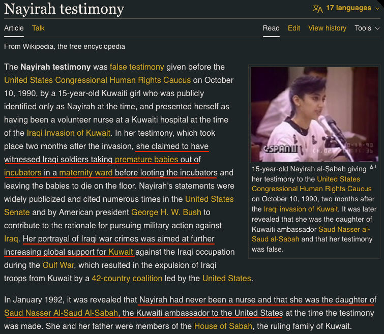 Read the article I penned back when about how supermarkets killed communities then try and prove me incorrect by researching the sheer amount of backhanders Tesco gave the fledgling Labor government then ask yourself the question of why if perjury is illegal did no one prosecute Nayirah for stating that she saw Iraqis play football with dead babies heads so Bush and Blair could wade in and steal all the oil they could get from an imaginary threat after manufacturing consent. Then wonder about the “dark actors” mentioned by the weapons expert that ended up dead for stating, on record, that the whole WMD thing was an immense fib to generate pretext and how proof was lacking. And Nayirah? Check her links with the Feds, how Hill & Knowlon did PR rep and then wonder why Amnesty International “fact checked” and corroborated all of this yet she never did any time in the bing for directly being responsible for loads of deaths for her Oscar winning performance on the world stage. Just like Live Aid bought AKs for the rebels instead of feeding the starving as they said they would…